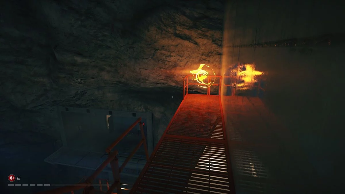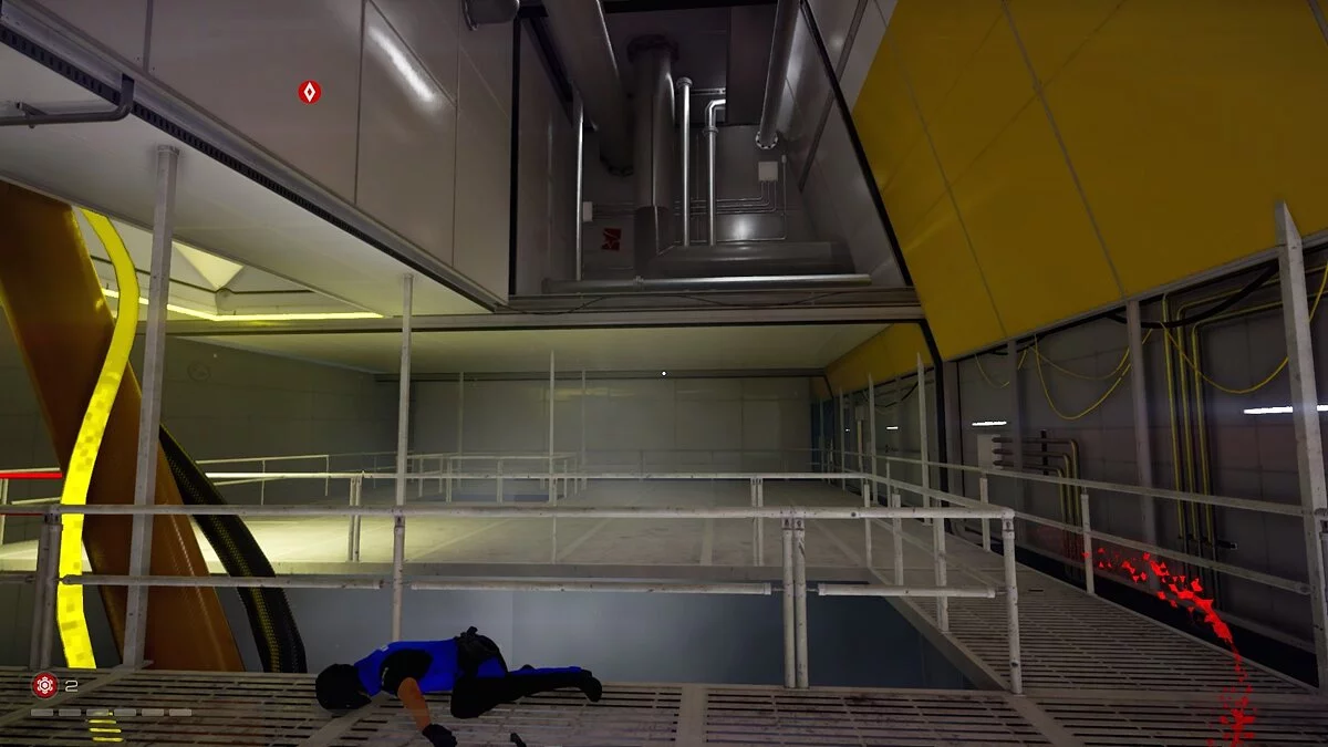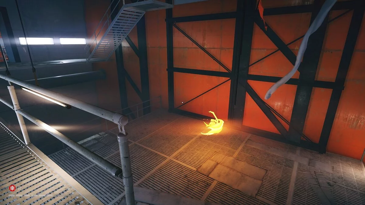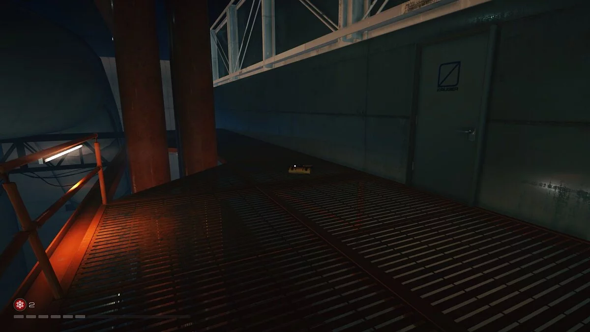 В комнате, где полно синих контейнеров Крюгера, заберитесь на самый верхний помост. Используя крюк-кошку, стяните панели и с помощью бега по стенам доберитесь до другого помоста. Пройдите по нему немного дальше и найдете сумку.