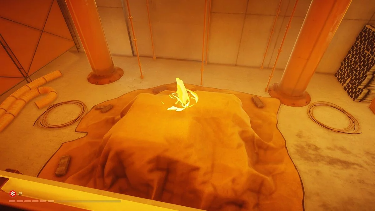 Взберитесь по стенам на подиум выше, чтобы захватить эту утечку.