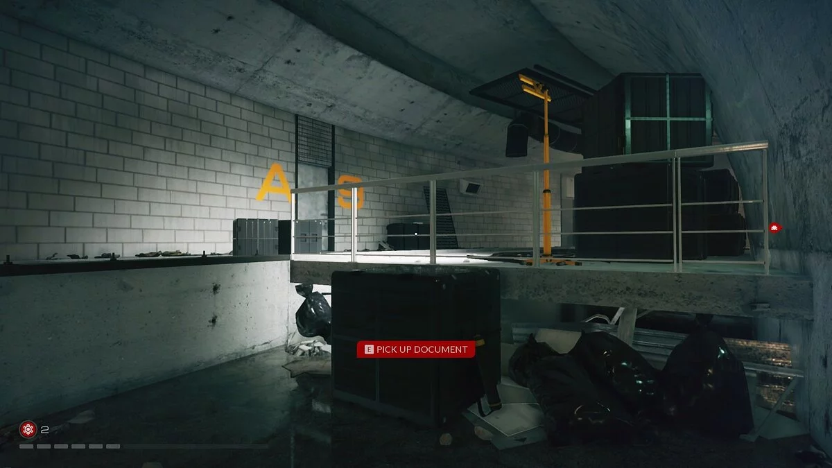 С места приземления после того, как вы использовали крюк-кошку, спрыгните еще раз вниз, на небольшой выступ. Пройдите через вентиляционную шахту, а затем поднимитесь вверх, чтобы найти первую сумку.