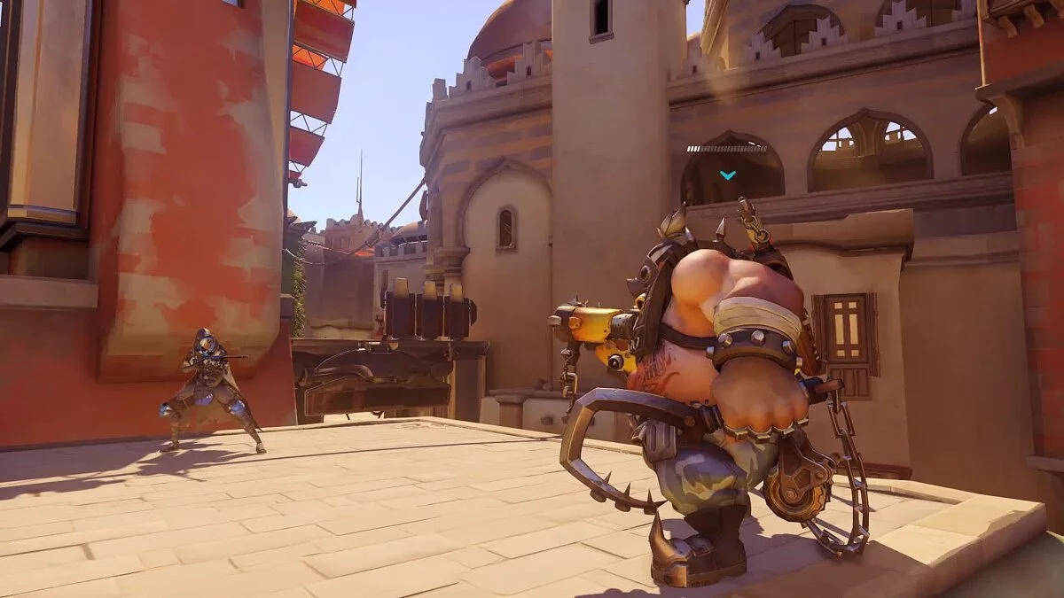 Для этого необходимо как-то сблизиться, используйте рывок. D.Va запустит двигатели мехи и сможет быстро переместиться, даже вертикально вверх. Крайне полезно для сокращения дистанции и фланговых атак, а еще лучше — с тыла, как на Вольской. В конце «рывка» не забывайте бить ближней атакой, она добавит урон к столкновению после рывка.