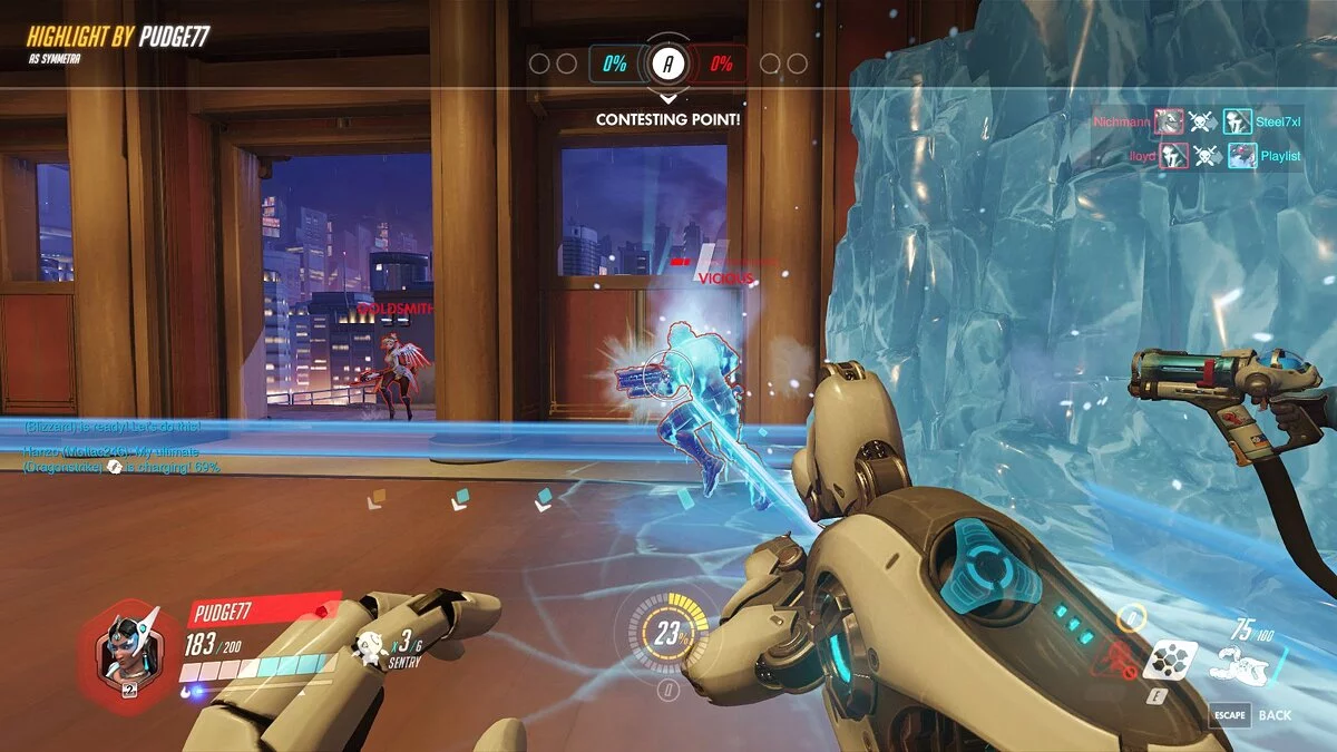 Симметра является крайне ситуативным персонажем. Из-за того, что она не умеет лечить, чаще всего берут других персонажей, а вместо ее турелей полагаются на Торбьорна. Но пренебрегать девушкой не стоит — ее телепорт может стать очень хорошим помощником, а турели на некоторых картах подпортят нервы даже умелым игрокам