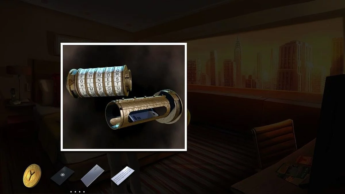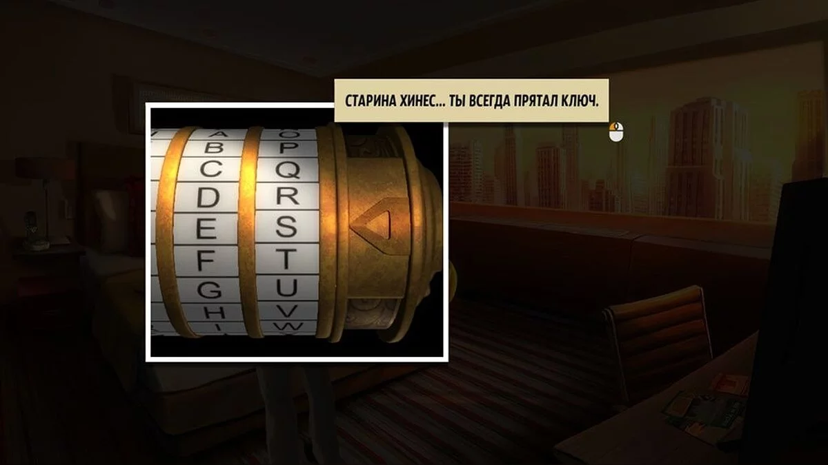 Вскоре поднос с «DIABLO» оказывается у нас в номере. Лишаем тарелку крышки и видим на ней криптекс — хитрое изобретение Леонардо да Винчи. Вводим код GINES (латинский вариант имени Хинес; он вытащил нас из темницы), и криптекс открывается. В нём спрятана флешка.