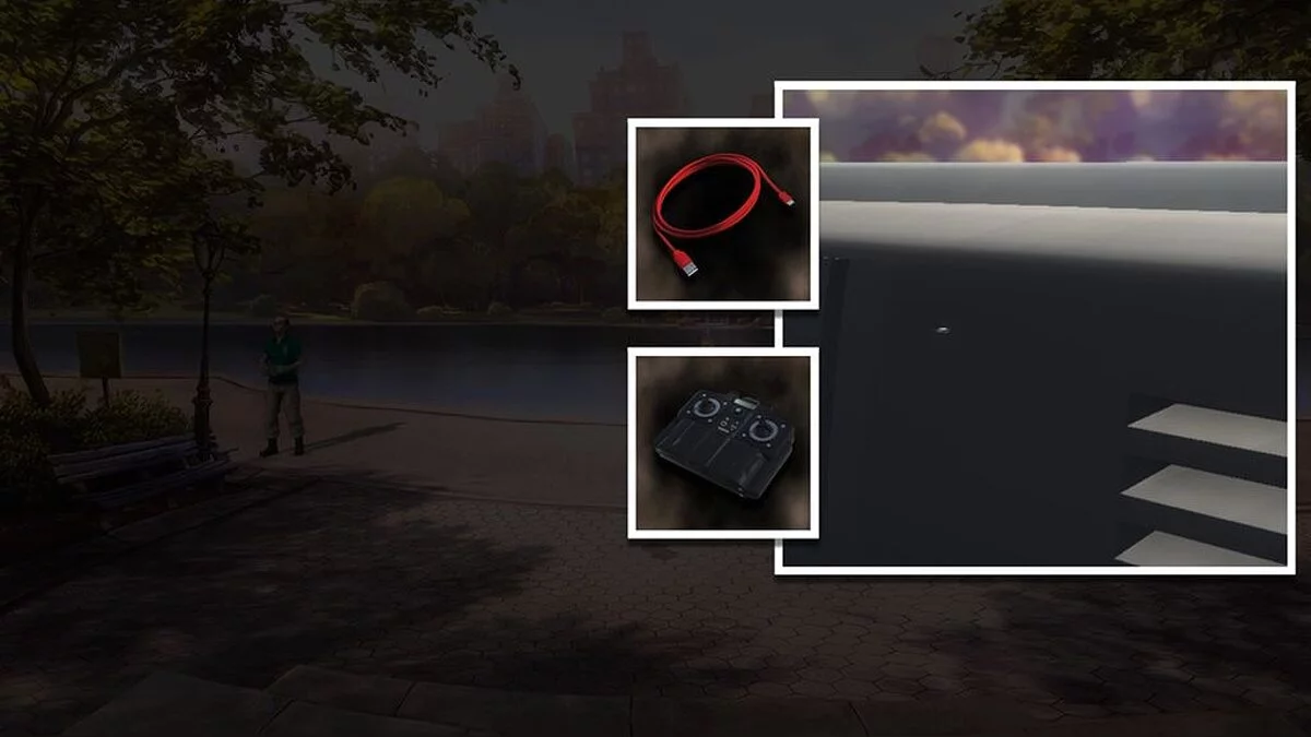 Выходим к пруду и беседуем с садовником обо всём. Далее осматриваем электрокар, лишаем его антенны, тыкаем в USB-порт кабель и пульт радиоуправления, чтобы зарядить последний, и замечаем фотографию собаки на руле.