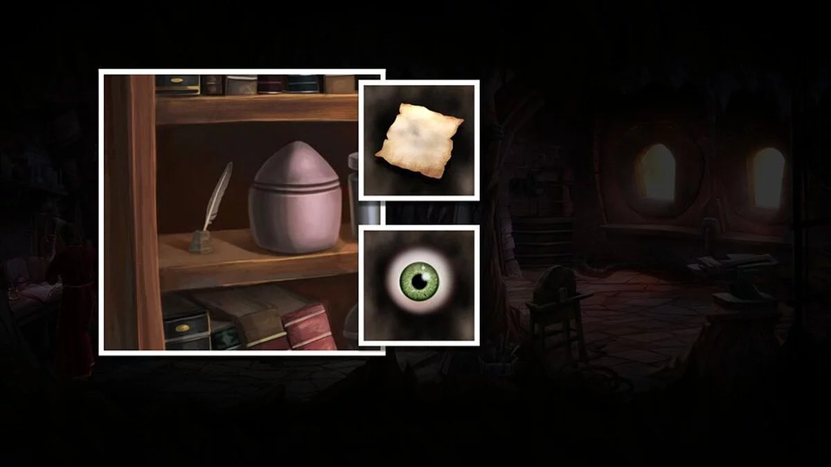 Дверь в тайную библиотеку скрывается за картиной, а на ней висит замок, открыть который можно только ключом, спрятанным в кабинете Хинеса. Но, чтобы увидеть скважину, сначала нужно осмотреть картину и вставить в маленькую круглую металлическую пластинку внизу циркуль.