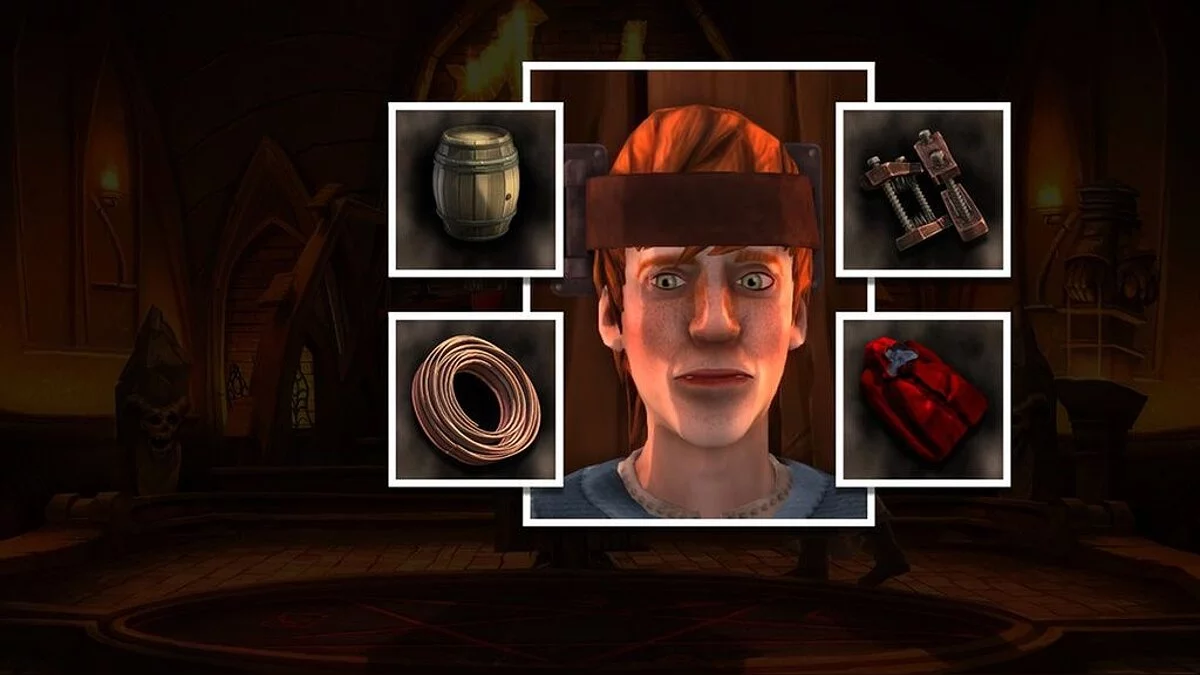 На полу находим сапог — пыточный инструмент. Применяем его на руке главного героя, обмотанной тряпкой, которая пропитается кровью и которую после нужно будет положить на лицо Алонсо. Кладём окровавленную тряпку на голову трупа, освобождаем борова от оков тем же ключом и, чтобы охранник поверил в то, что свинья обглодала наше лицо, используем подсказку о дьяволе.
