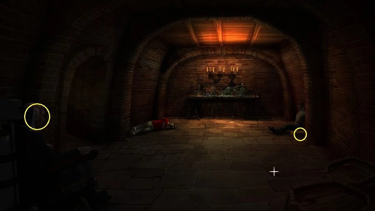 Хинес подготовил для нас подарок — нам предстоит пытать ребёнка. Но делать мы этого, конечно, не будем. Мы поможем парнишке сбежать и сделаем вид, будто случайно убили его. Но для начала разбудим мальчугана толчёной редькой, найденной в лаборатории-кузне. Там же добываем пилу, кожаный цилиндр, катушку с нитками и сонный порошок. Когда парень приходит в себя, разговариваем с ним, после чего осматриваем его и замечаем — у него глаза Кэйтир.
