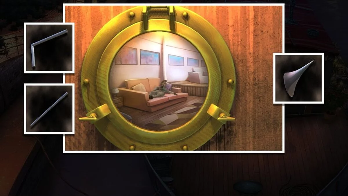 Сначала Берём спасательный круг и весло со стены, а в рядом стоящем деревянном ящике находим изоленту. Залезаем на крышу, подползаем к двери, кликаем на неё и осознаём, что можем преподнести сюрприз одному из бандитов, постучавшись в дверь и застав его врасплох ударом тупым деревянным предметом по голове.