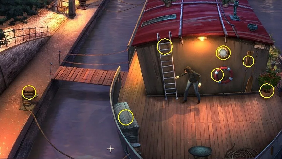 Прилетев в столицу Нидерландов и добравшись до моста, под которым живёт Ласка, перво-наперво спрыгиваем с него на катер. Заглядываем в иллюминатор и рассматриваем двух бандитов. Нам нужно выманить их поодиночке и пробраться внутрь судна.