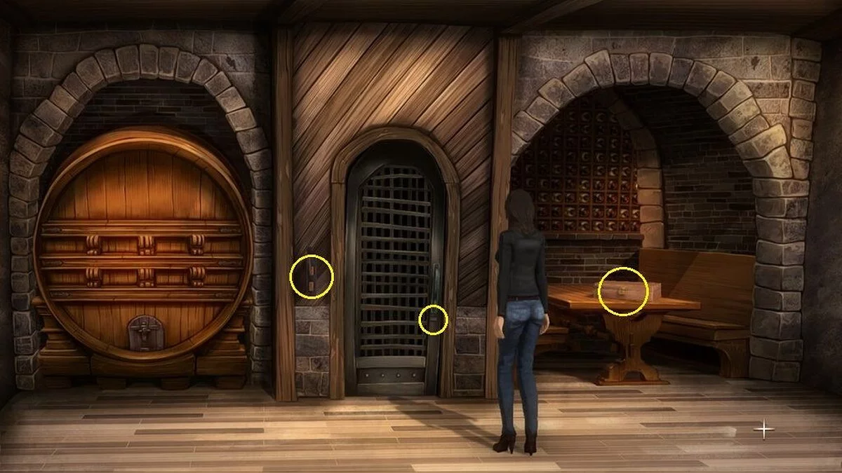 Подвал — наш. Для начала берём уже знакомый нам в роли Джона нож из чемоданчика на столе. После этого подходим к рычажку возле решётки и опускаем его. Разговариваем с подошедшим к двери Джоном, спрашиваем у него, какая дата может быть кодом для замка, и вводим число 1501. Дверь отперта.