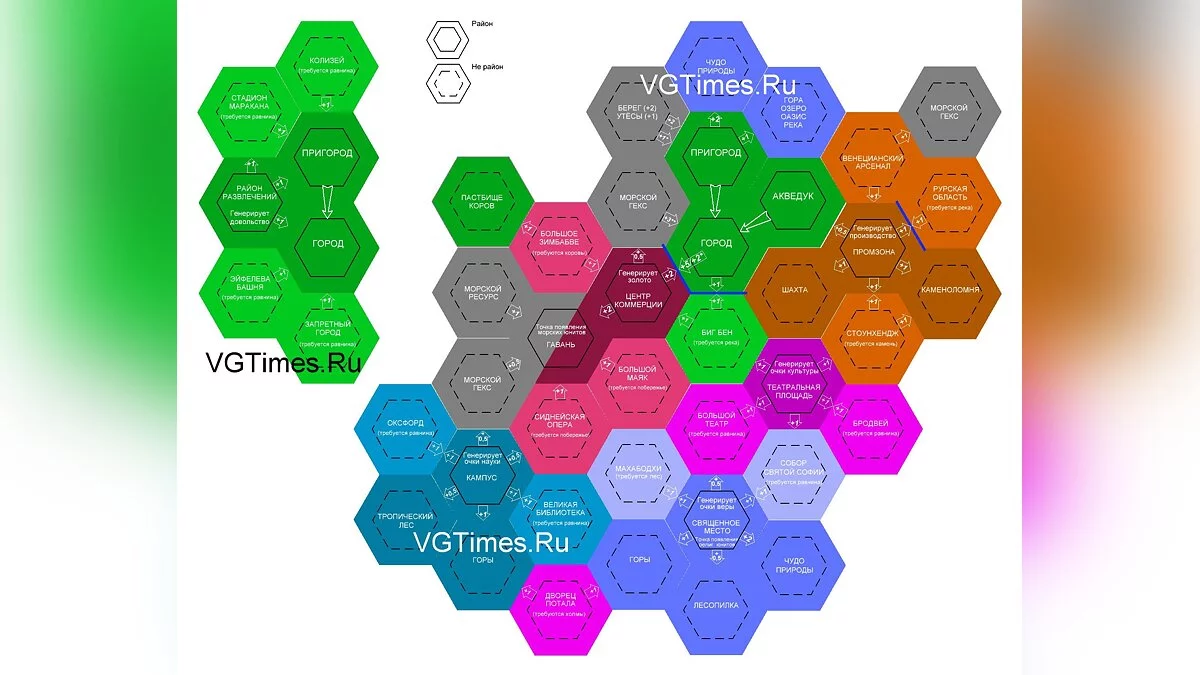 В рамках данного гайда мы не будем приводить точные данные по количеству производства и его типу в зависимости от района, бонусам соседства районов и влияния районов на великих людей, поскольку эти данные со временем изменятся из-за корректировки баланса и выхода новых дополнений.