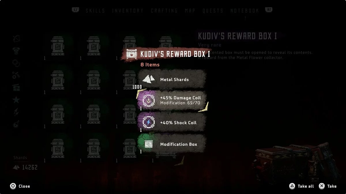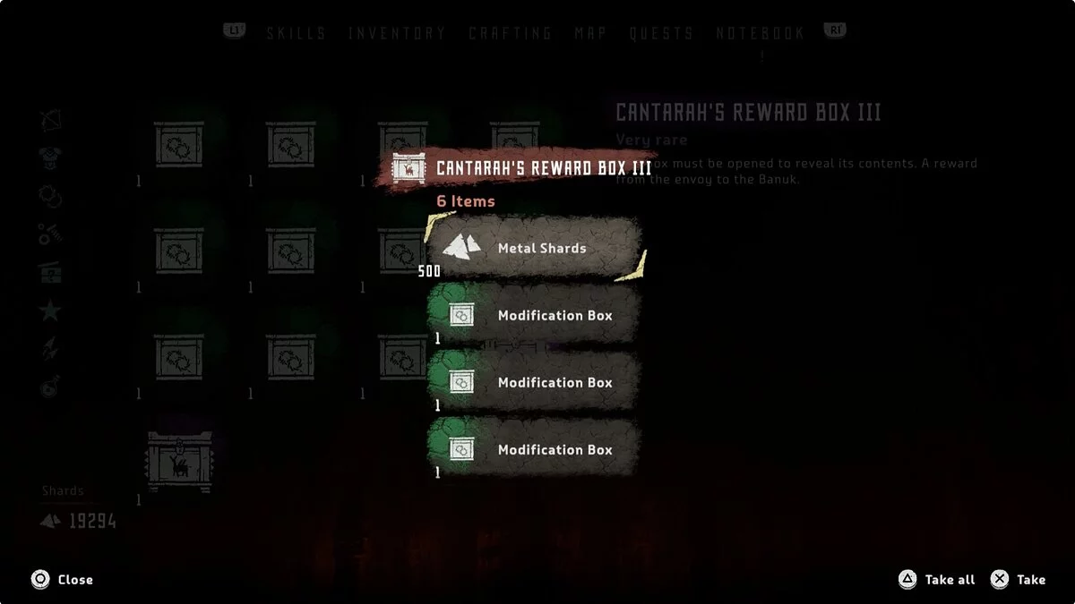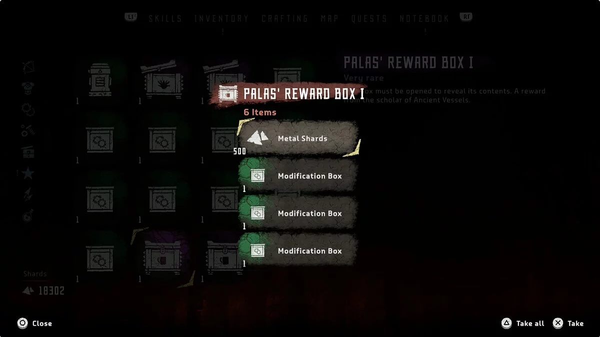 Вы можете продать набор из четырех сосудов торговцу Паласу за ящик, содержащий 500 металлических кусков (местная валюта) и некоторые модификации.