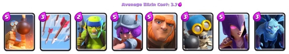 Используйте башни с бомбами, а также маленького скелета. Кроме того, в этой колоде вам понадобится связка из гиганта и ведьмы, правда за них придется расплатиться довольно большим количеством эликсира. Чтобы отвлечь врага и получить возможность вывести свои войска на передовую, стоит использовать башню, а против миньонов отлично сработает маленький дракон и мушкетер.