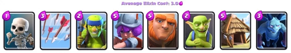 Здесь не будет эпических карт, однако в данной колоде присутствует большое изобилие высокоуровневых карт, которые будет не так то просто прокачать. Данная сборка подойдет вам в том случае, если вы стремитесь быстрее увеличить свой уровень.