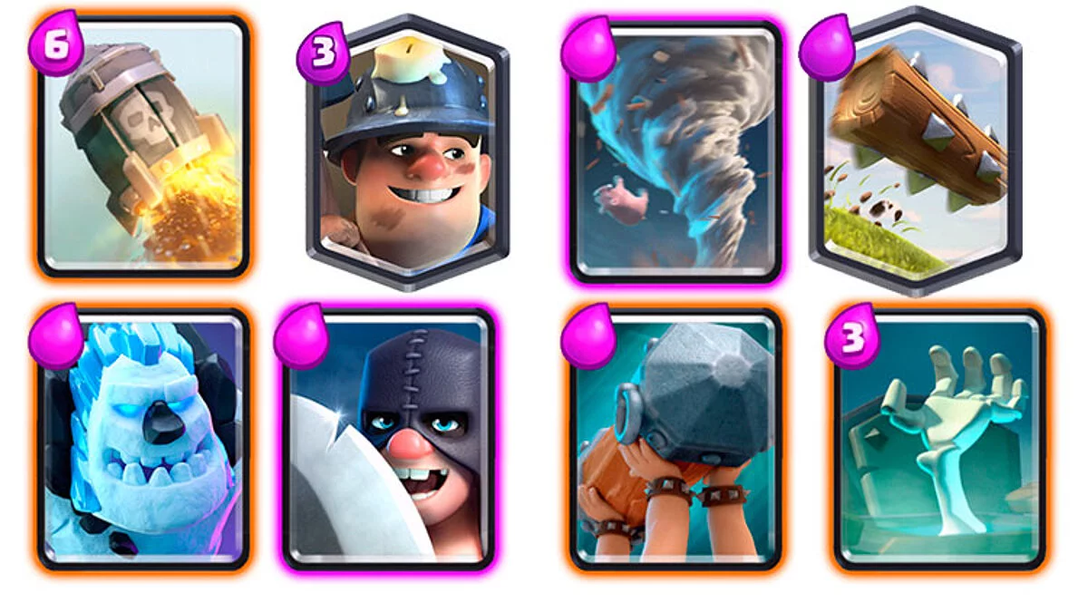 Важным элементом игры является Сборщик Эликсира, который нужно построить, как только вы наберете 9,5 эликсира, перед Главной Башней. Если же с самого начала у вас нет Сборщика, то стоит прокрутить колоду, так как он вам понадобится для победы. Как только вы поймете, что противник отстает от вас, то стоит атаковать его парой сильных ударов. Подавленный оппонент будет пытаться молниеносно атаковать и сразить вас, как можно быстрее. Только вот это у него не получится, так как Элитные Варвары помогут вам отразить практически все выпады врага. Если же его у вас нет, то на помощь придут Мегаминьоны, простые Миньоны и, конечно же, Ледяной Голем.