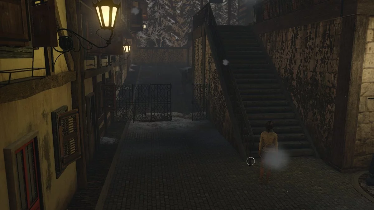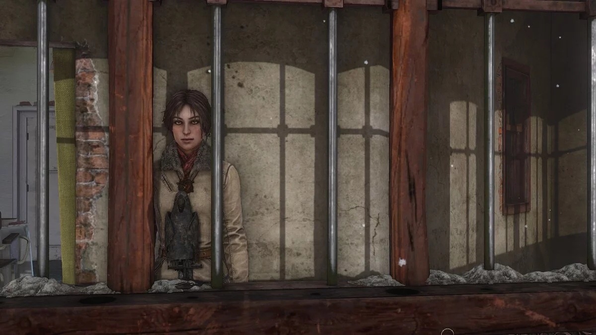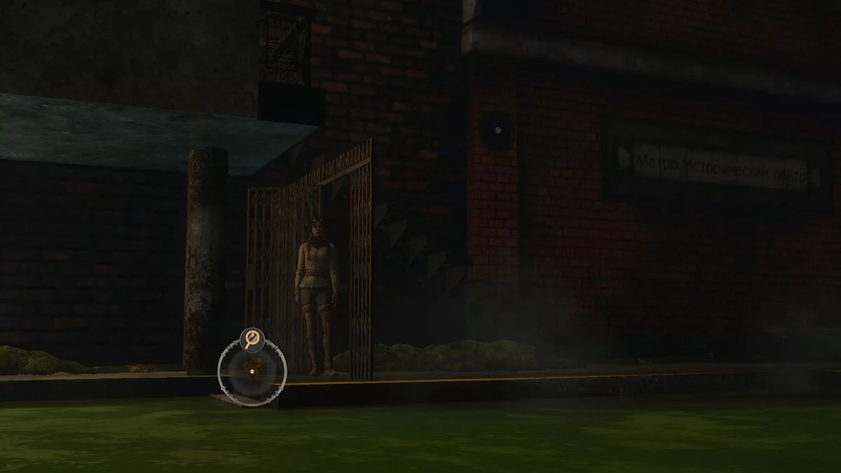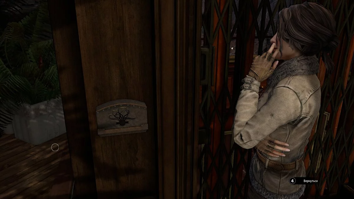 После захватывающего ролика мы возвращаемся на «Кристалл». Сначала поговорим с Аяваской на носу корабля, а затем на спуске с судна встретим взволнованную Сару. Оказывается, что Штайнер так и не вернулся из больницы, да и Курка до сих пор нет. Придется возвращаться в логово «Ефимовой», где уже поселился еще один тип, с которым Кейт пожелала бы не иметь дел, некий полковник с повязкой на глазу. Но делать нечего, нам нужно найти и использовать фуникулер. К нему можно попасть либо пройдя мастерскую Штайнера, либо через мэрию. Я бы посоветовал пройти вторым путем, так как за это можно получить ачивку, поговорив там с взволнованным мэром. Сразу после мэрии притаилась местная подъемная станция, дверь которой закрыта. Самого фуникулера не видно, но, скорее всего, он находится на другом конце. Сейчас нам нужно отойти от закрытой двери и пройти еще пару домов, спустится по лестнице и зайти в переулок, огороженный решеткой. Там будет стоять телега, под колесами которой лежат клинья, чтобы та не укатилась. Берем один клин, второй попадет в инвентарь автоматически, а вот третий, самый маленький, нужно будет поднять с места, где вроде бы стояла какая-то телега, да-да в прошедшем, именно что «стояла».