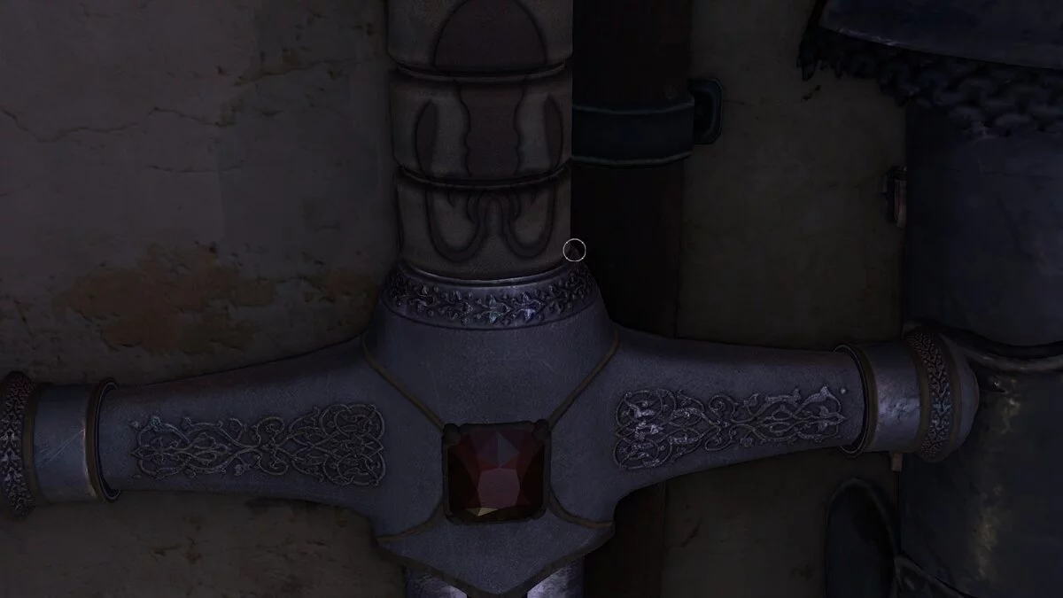 Самое время для следующей головоломки. Дерните веревку на стене рядом с рыцарем. Теперь перенесем внимание на рукоять меча. Сняв три защелки, начинаем вращать колесики так, чтобы три элемента образовали символ, который можно увидеть на компьютере в верхней части монитора. Это приведет к тому, что меч выйдет из крепежа и откроет нам цветовой код. Этот код следует использовать на щите, что висит рядом, и тогда мы сможем открыть скрытый проход, куда и исчезла мадам Ольга.