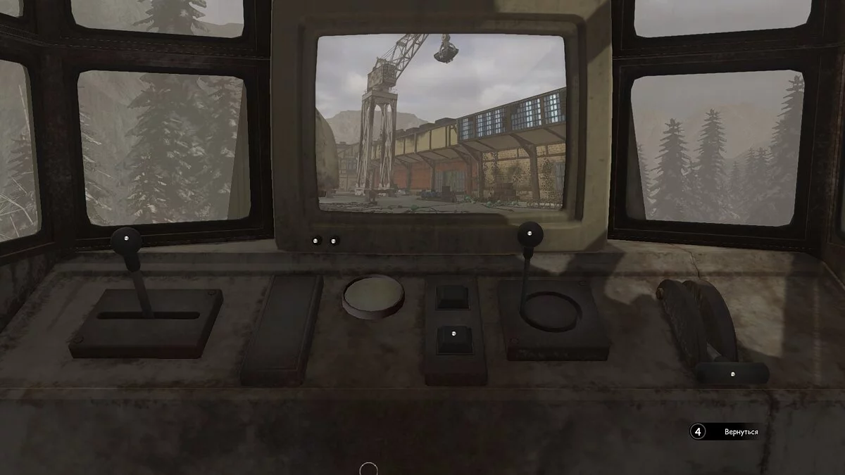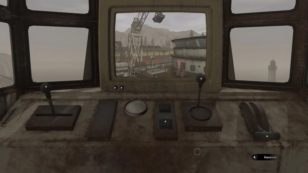 Далее сначала двигаем кран как можно ближе к тележке, развернув его к ней передом. Нажимаем верхнюю кнопку из блока «5». Теперь отодвигаем кран в противоположную сторону до упора, разворачиваем его лицом к кораблю, при помощи рычага «2» подъезжаем ближе и используем кнопку из блока «5», но теперь нижнюю. Вот два скриншота с правильными позициями крана: