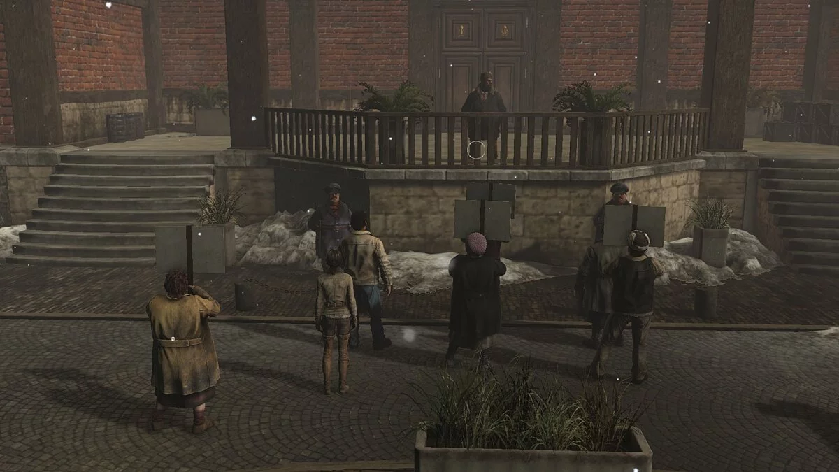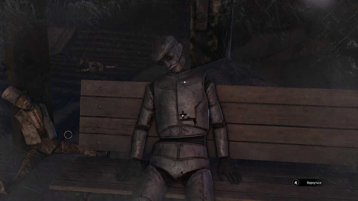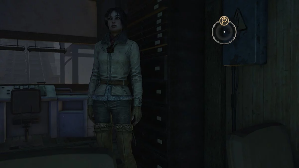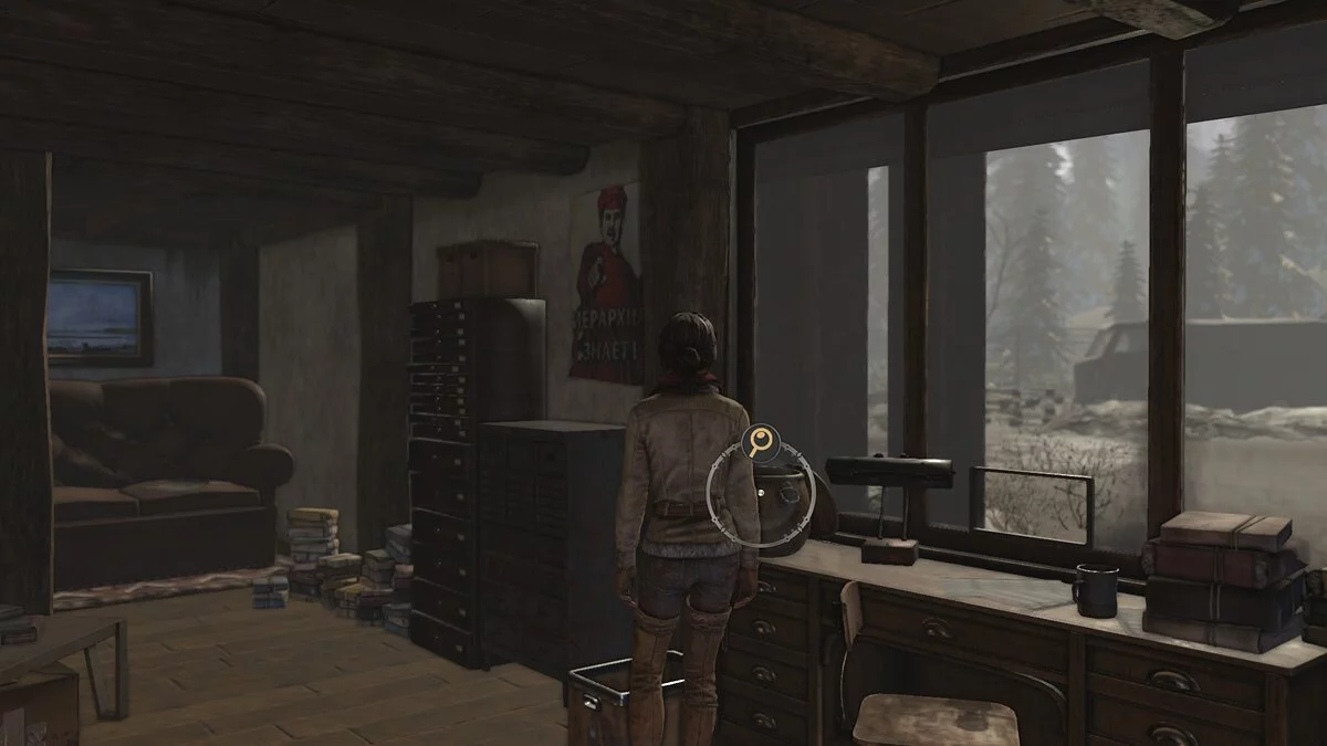 Здесь также темно и несколько уныло. Поговорив с медсестрой за стойкой, мы понимаем, что больница на карантине, фуникулеры не работают, и, в общем, у нас один путь — к доктору Замятину. Дверь в его в кабинет приоткрыта, но вы также можете ориентироваться по двум санитарам, что беседуют неподалеку от него. Курк был прав — Замятин оказывается весьма добродушным старичком, но вот убедить его в том, что доктор Ефимова скорее калечит своих пациентов нежели лечит их у Кейт не выходит. И выйти отсюда мы можем только с разрешения самой мадам Ольги.