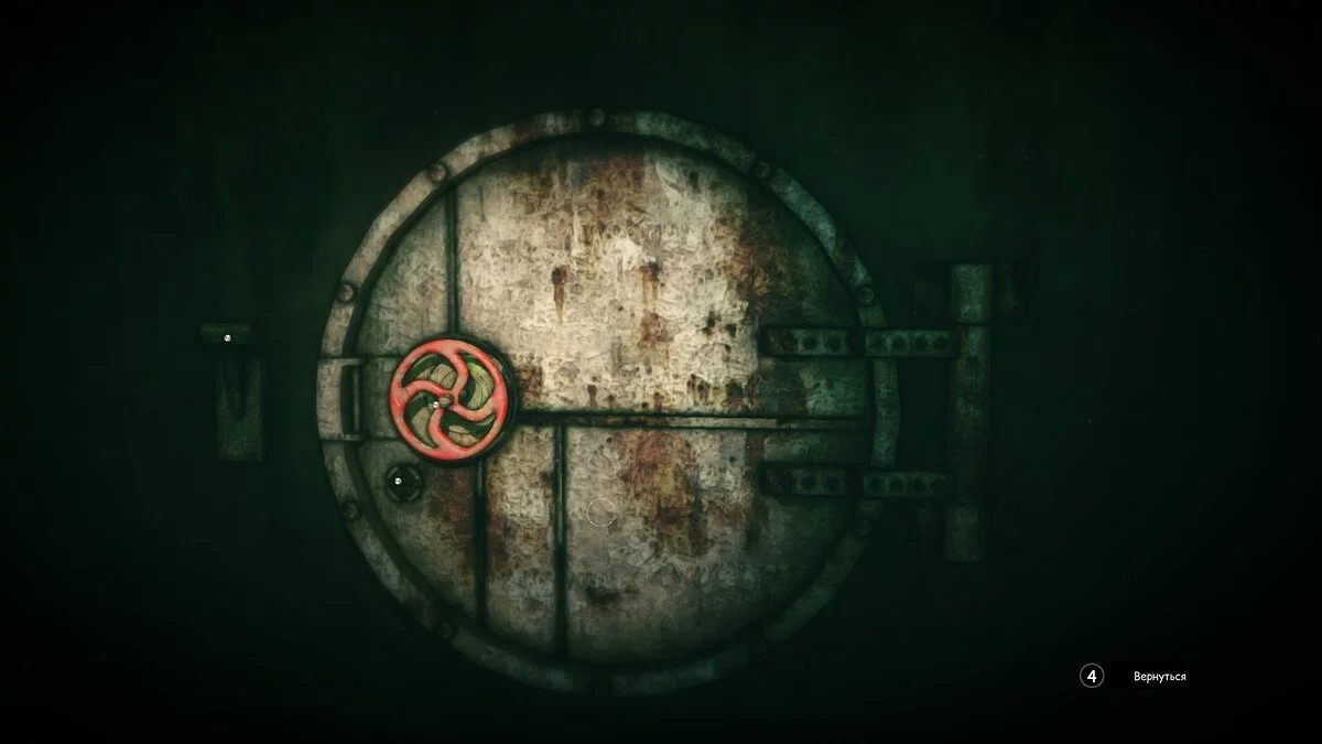 Выйдя в коридор, нам нужно попасть к доктору Мангелингу — только с его разрешения можно покинуть это странное местечко. Его кабинет легко опознать по двум санитарам, что стоят прямо под его дверьми. После диалога с доктором мы получаем ключ и теперь можем попытаться открыть лифт, запечатанный причудливым замком. Это первая головоломка, и решается она довольно просто — нужно расположить все щупальца так, чтобы они закрывали отверстия. Напутать тут сложно, так как все пазлы точь-в -точь повторяют вращаемые элементы, и два похожих варианта тут найти сложнее, чем просто расставить все по своим местам.