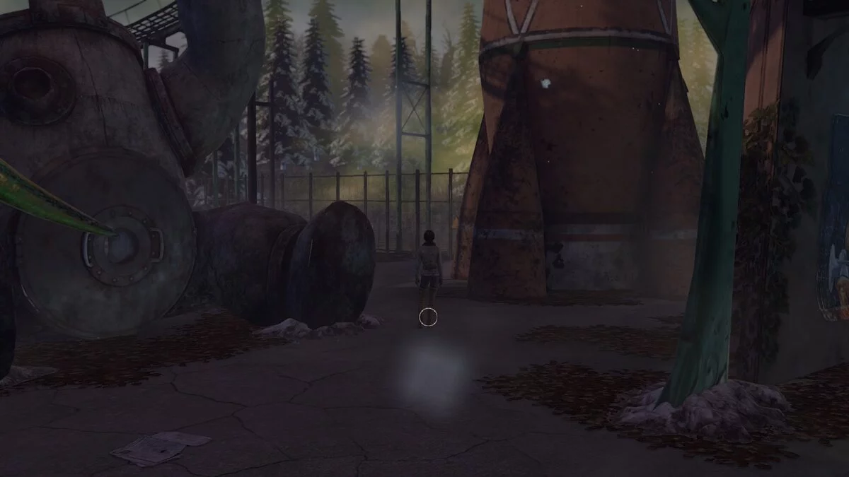 Теперь надо зайти в сам парк через массивные ржавые ворота и завернуть в первый дом по правую руку Кейт. Это будет чем-то вроде мастерской Форальберга, но мы пока здесь не задерживаемся, а пробегаем в другой конец и выходим из задней двери. Нам надо добраться до того трактора в начале. Идем по рельсам, и, между делом, осмотрите две поломанные машины на путях. Кейт умелым движением руки уберет эту преграду. Взаимодействуем с задней частью трактора — лебедка вполне сносном состоянии, а вот водитель-автоматон уже ни на что не способен. Зато в руках у него есть ключ. Забираем его и возвращаемся в мастерскую. Благодаря этому ключу открываем шкатулку и получаем крестообразный ключ Форальберга и гаечный ключ. Тут же напротив стоит коробка, в ней можно найти шестеренку. И самое вкусное — на стене висит карта, которая обещает крайне «вкусную» головоломку парка Баранур.