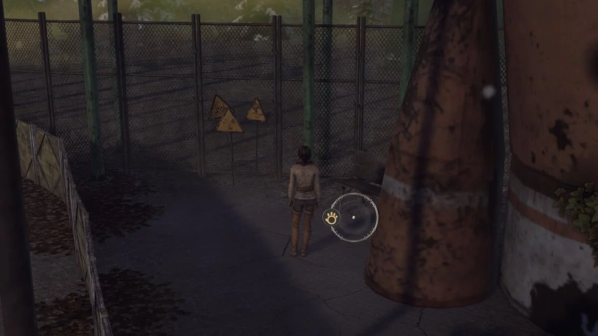 Если сразу получить ключ не удалось, то придется прогуляться до завалов у входа и отыскать там жетон погибшего мужа Катерины. И уже этот жетон обменять на ключ. Возвращаемся обратно в парк.
