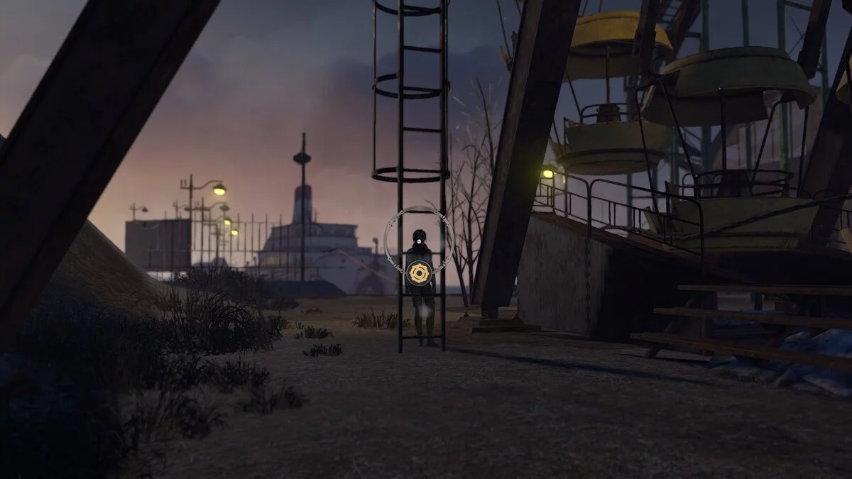 Заходим обратно в парк, но перед заходом Кейт обращает наше внимание на машинку с американских горок. Да, именно эту головоломку надо решить сейчас. Однако сначала надо получить одну вещь: в парке есть гигантский водолаз без головы (снизу он похож на плюшевого мишку), и если пройти за него, то рядом со скамейкой можно подобрать прутик.
