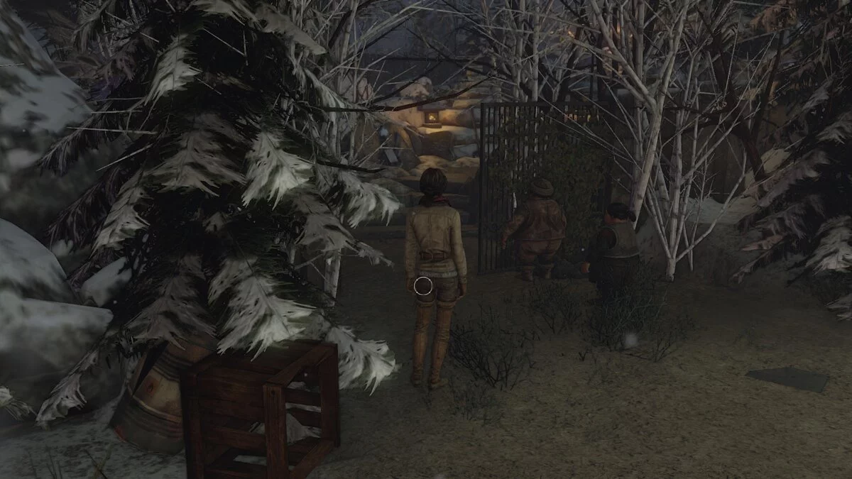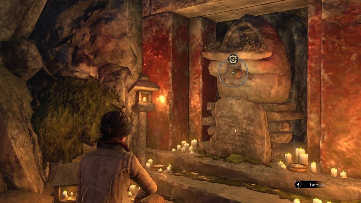 Побеседовав с Курком и Айяваской, выясняется, что где-то рядом спрятан священный храм Красной Луны. И юколам обязательно нужно совершить паломничество к нему. Но поди найди его. Идем к стадиону и поворачиваем направо, пройдя через калитку. Там мы видим пару коротышек, которые боятся заходить в небольшой освещенный проход. И правильно делают. Ведь скоро мы поймем, что путь этот ведет на кладбище. Но нам туда обязательно надо сходить. В доме гробовщика живет дочь предыдущего проводника Дуняша. Она поделится очень полезным дневником отца и попросит Кейт организовать встречу с Курком.