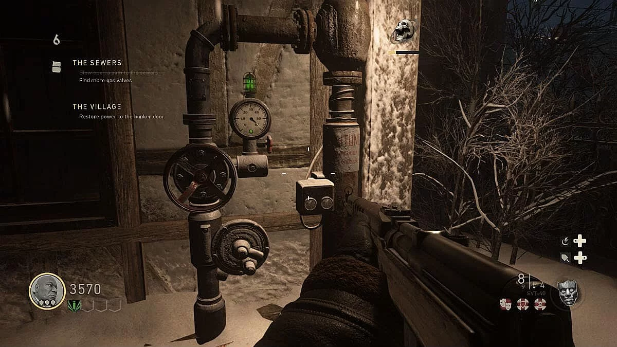 Первая труба находится в комнате управления. Это место, где находится автомат M3 (Grease Gun). Вторую трубу нужно искать за башней. Чтобы добраться до нее, придется открыть несколько ворот (копим очки!). Последняя, третья труба в подземной лаборатории.