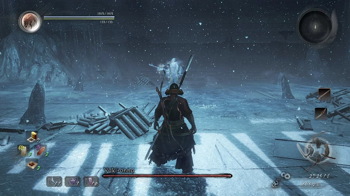 Чтобы нанести максимальное количество урона по Юки-онна, следует использовать следующий алгоритм: выстрелить из мушкета (прямо в голову, это важно!), сделать несколько шагов по направлению к боссу, потом выстрелить из лука (правильно, тоже в голову!) и только после этого переключиться на копье или меч, чтобы сделать один-два удара. Если со здоровьем проблемы, то можно вообще отказаться от ближнего боя.