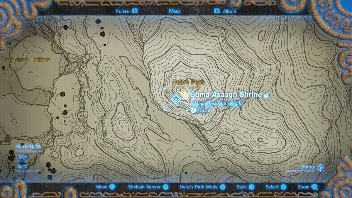 Пришло время закончить начатое. Финальное место встречи с красной звездой найти труднее всего. Когда вы думаете о заснеженной горе, вы, скорее всего, вспоминаете о горе Гирула на востоке. Но это неверное место! Вам будет нужна гора Гебра, в северо-западе Хайрула. Посмотрите на скриншот карты, если вы хотите узнать точное местоположение. Если вы не хотите умереть от холода на самой высокой горе игры, то не забудьте взять с собой теплую одежду.