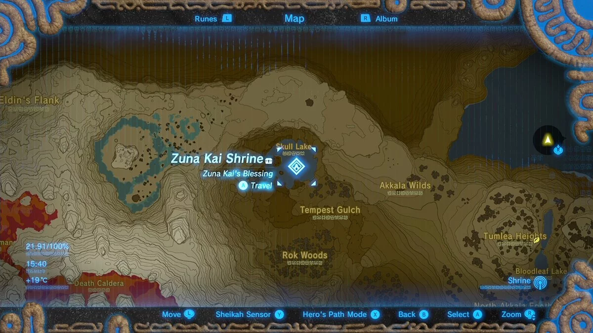 Добраться до этого места довольно легко. Если вы уже открыли святилище Зуна-Кай, то просто телепортируетесь к нему. Встаньте на входе в храм и посмотрите на восток. Вы снова услышать звук падающей звезды. Ещё одна часть брони ваша.