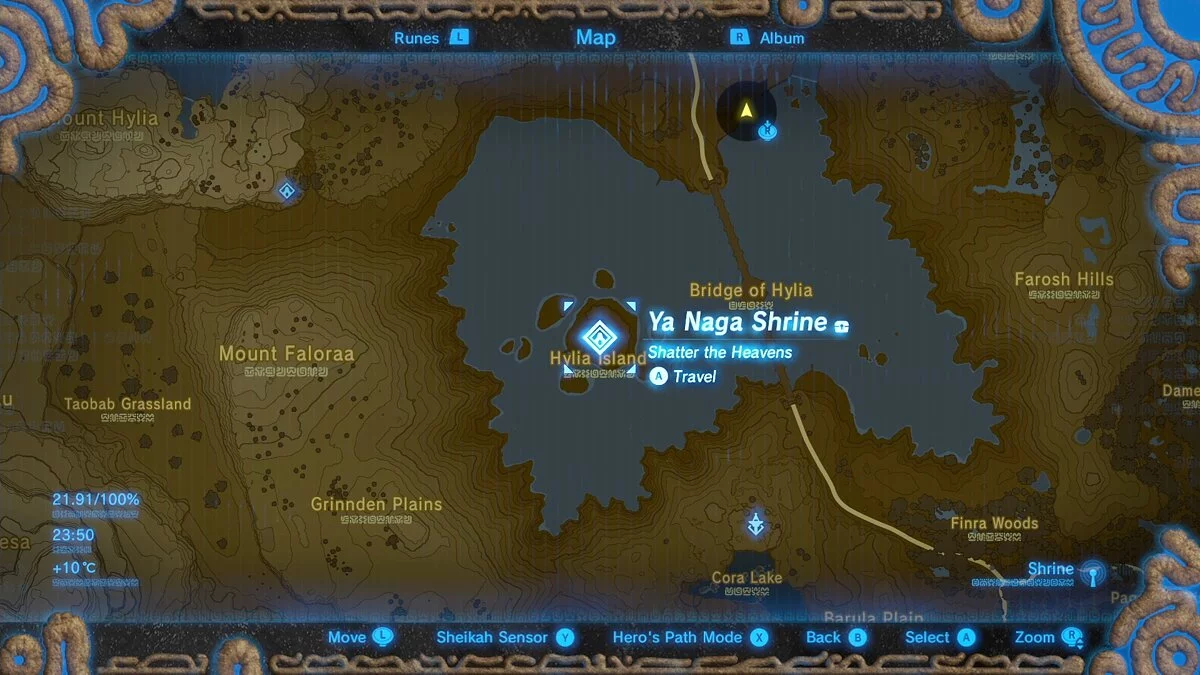 Самая простая загадка. В игре есть только один действительно огромный мост, который пересекает озеро Хайлия. Игрокам он может быть известен по Twilight Princess и Super Smash Bros. В Breath of the Wild нужный вам мост находятся к югу от поля Хайрула. Трудно не заметить его, учитывая наличие башни-телепорта рядом. Взгляните на месторасположение на карте: