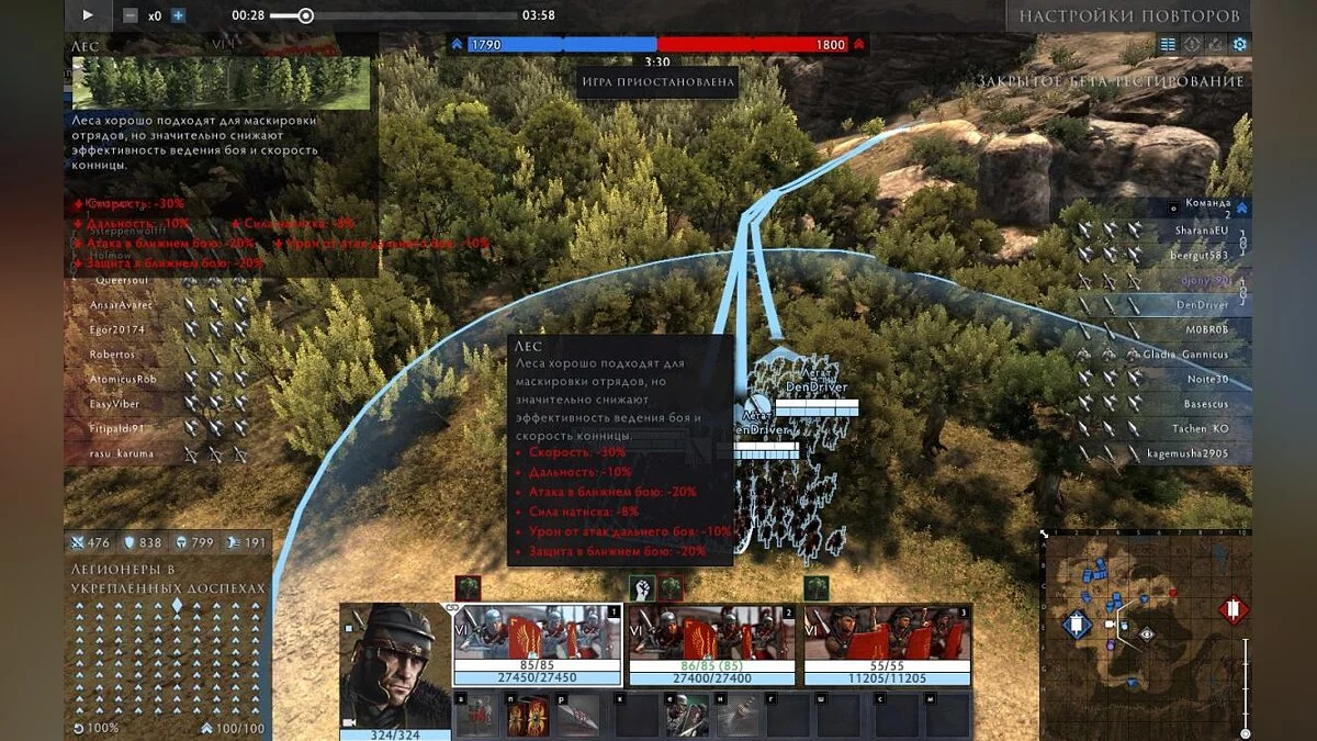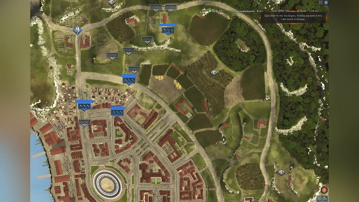 Фермопилы или Капитолийский Холм — это карты для полководцев 1-3 уровня, они спроектированы так, чтобы игрок мог изучить основные механики и нюансы, например, почему возвышенности надо занимать стрелкам, а в узкие городские проходы не стоит соваться без охвата флангов.