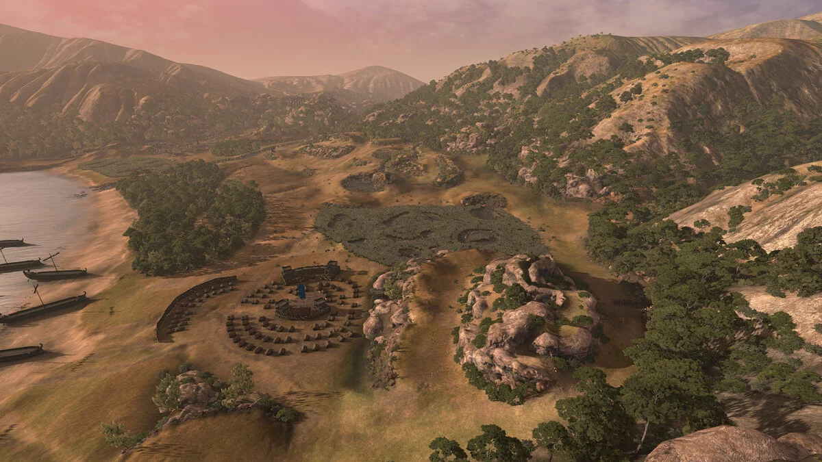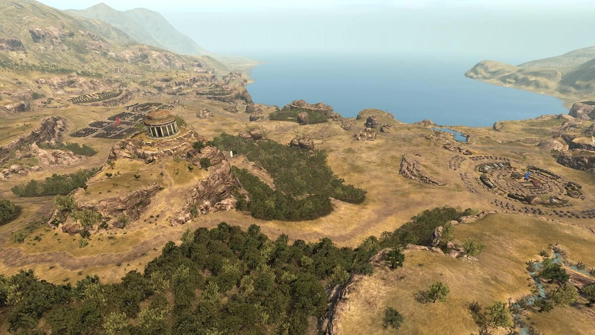 Фермопилы — карта большая, но из-за вышеописанного разделения, это не чувствуется. Вы вполне можете развернуться и быстро прибыть на помощь к союзникам, оперативно вернуться к лагерю, двинуться по флангам, чтобы быстро зайти противнику в тыл или захватить его лагерь.