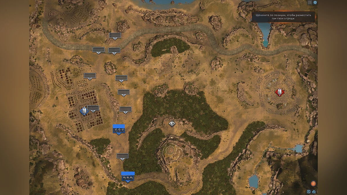 Еще одна проблема – плотность боевых порядков на ширину фронта. Если команда выставит отряды в одну линию, то потеряет боевую мощь против групп врагов. Если пойдет группами, то из-за размера карты неизбежны разрывы в рядах, враги проскочат в ваш тыл.
