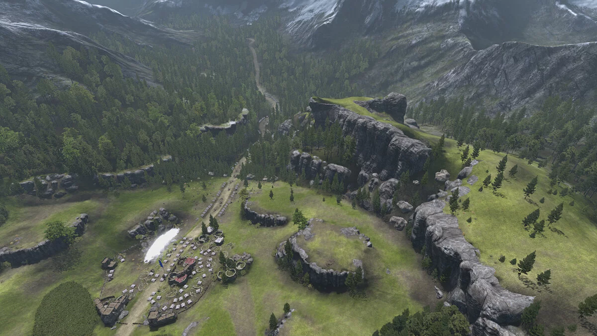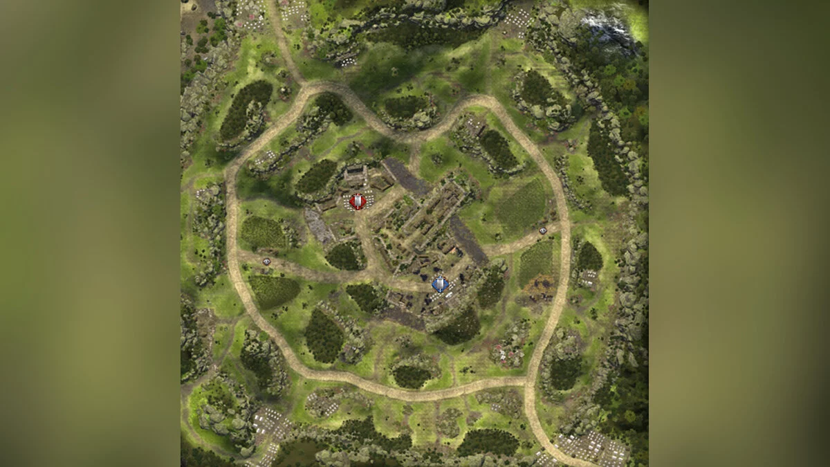 Граница деревни делит карту на две части – внутри неё расположены лагери игроков, а вне – леса, поля и вышки. В отличие от других карт, игроки обеих команд появляются позади своих баз и должны быстро продвигаться вперёд, чтобы занять каждый свою базу и подготовиться к обороне. Лучники, например, могут спрятаться в ближайшем лесу, а если их прикроет пехота, то базу будет невозможно взять, пока значительные силы противника не уничтожат защищающую её группу.