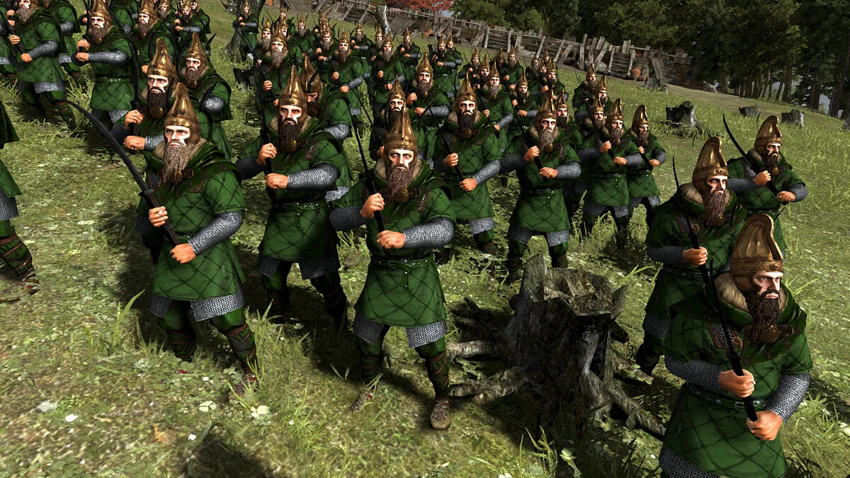 - 1 линую воинов с двуручными мечами-фальксами, это тяжелое оружие, которое игнорирует защиту щитом и броню, но для их разблокирования нужно прокачать ветки мечников и всадников до 4 уровня;