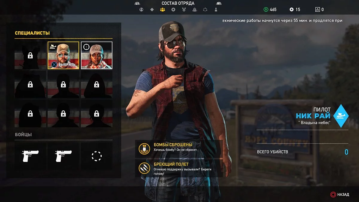 - В рамках миссии вы получите вертолет Аделаиды от культистов. После этого она станет доступна для выбора.
