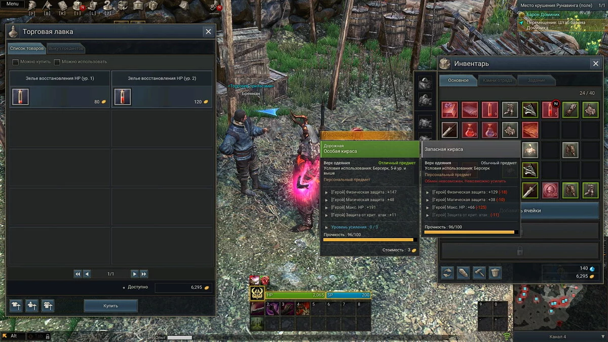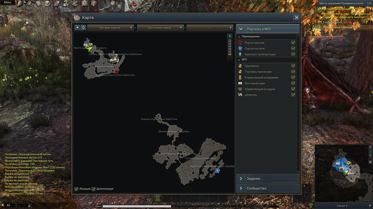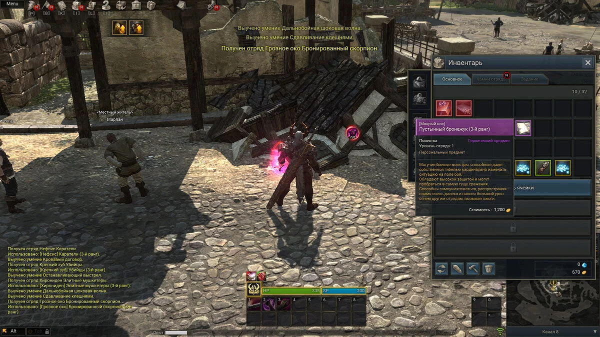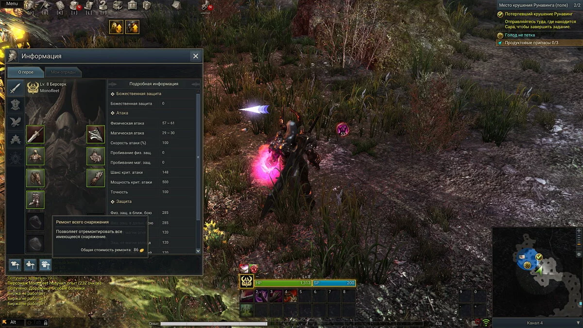 Первый тип — это бесконечные разговоры с персонажами, сдача и взятие квестов, а также торговля, продажа и общение с игроками. Механика выполнения квестов очень проста — приходите на нужную точку, убиваете небольшие группы мобов и выполняете задания, все необходимые объекты подсвечиваются при вашем приближении. Опыт можно набирать, монотонно убивая (гриндя) мобов, но награда за миссии так велика, что вы можете быстро прокачиваться и без гринда.