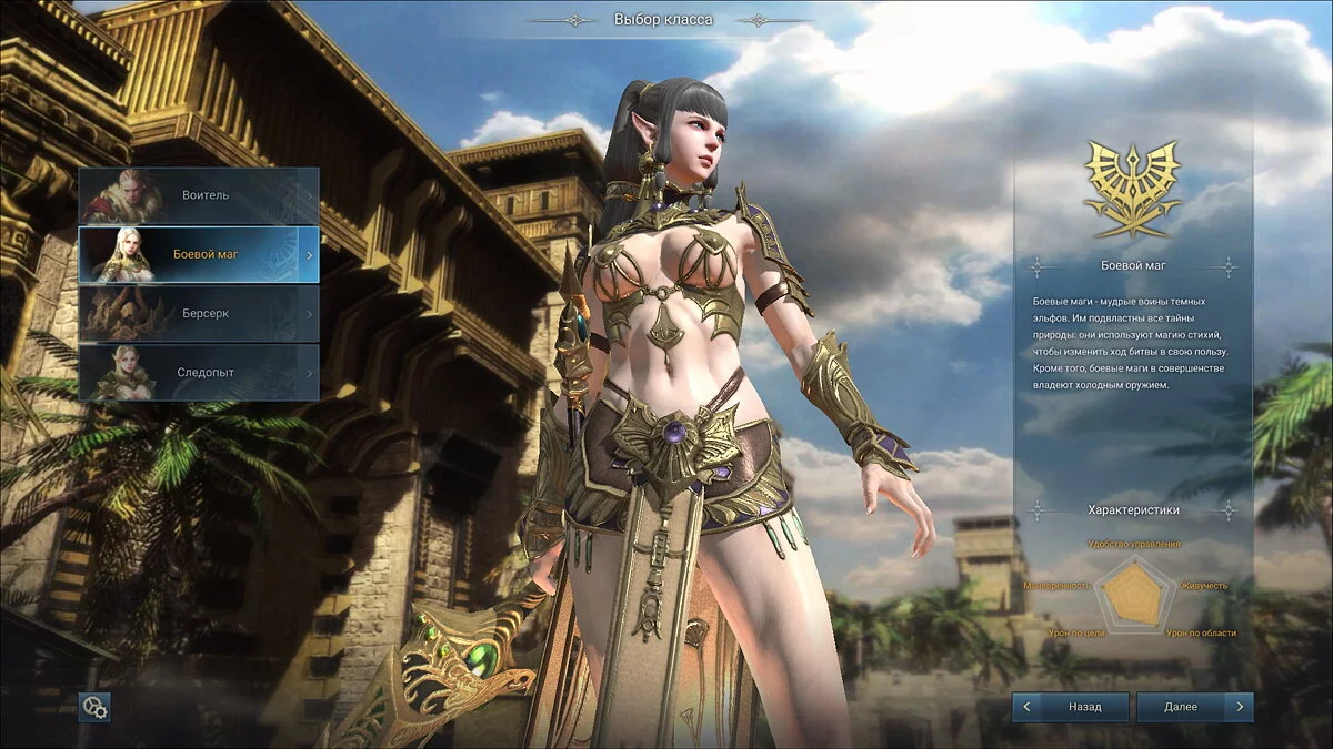 Боевой маг использует сочетание одноручного посоха и клинка, в ближнем бою он бьет врагов своим посохом и клинком, а в дальнем кастует магию из рук. Это не привычный для MMORPG волшебник, который дохнет от малейшего чиха, напротив, Боевой маг не страшится драки со своими противниками.