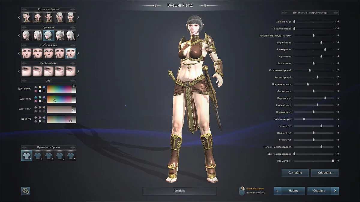 После выбора персонажа вы можете настроить его внешний вид, подобрав форму лица, цвет кожи, прическу, броню и уникальные особенности внешности: