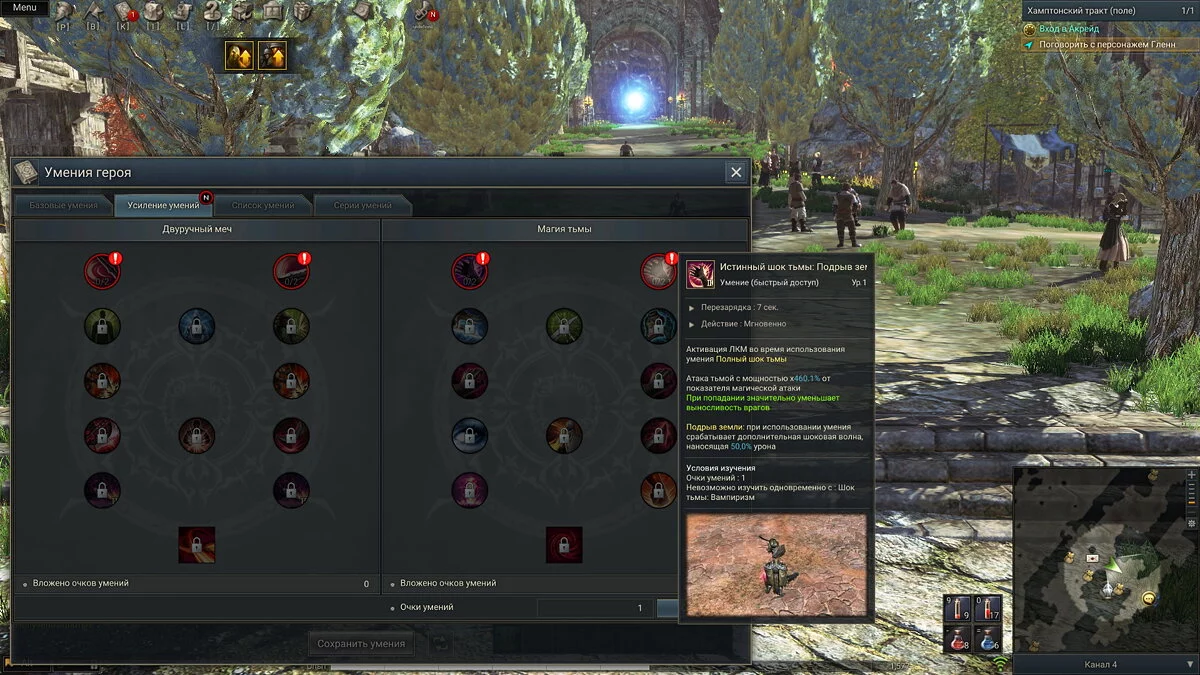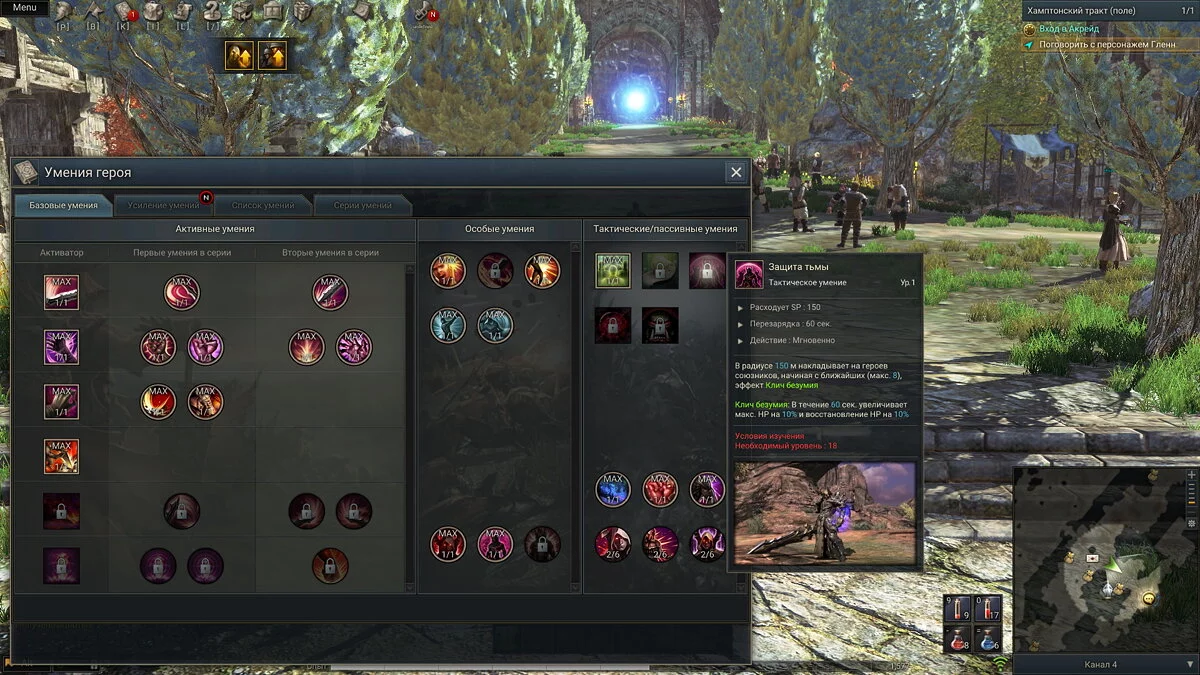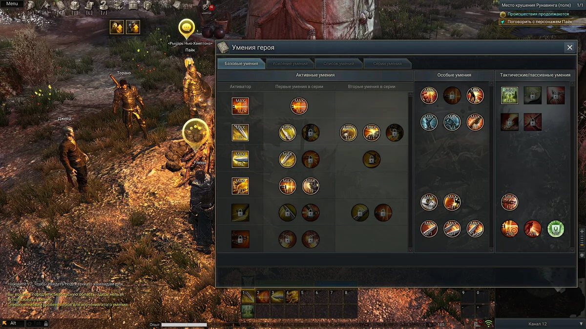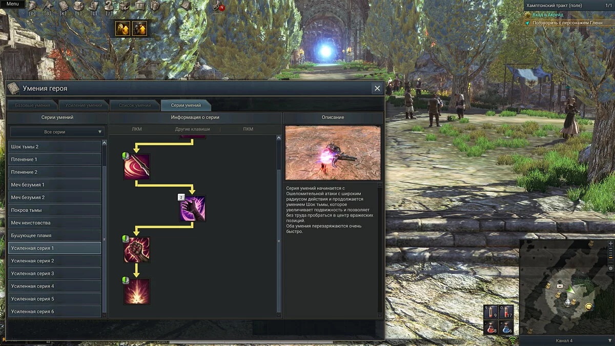 - Активные умения героя — применяются во время игры от третьего лица в обычном мире. Всего их 8, но долгое время доступны только 6, остальные 2 откроются после прокачки двух линии «усилений». Разблокируются по мере роста уровня героя с 1 по 20 уровень. Внимательно читайте описания, чтобы понять, как их применять.