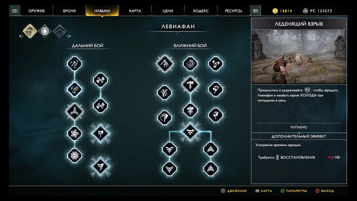 Леденящий взрыв увеличивает мощность топора, позволяя вам зарядить его перед броском во врага. Навык позволяет не только наносить дополнительный урон, но и накладывать на оппонента негативный эффект холода.