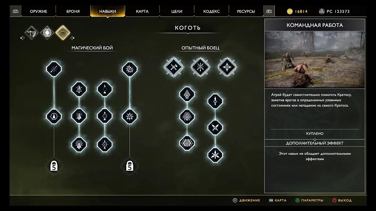 Командная работа — это главное отличие новой части God of War от прошлых игр серии. В новом приключении Кратосу помогает его сын. Он постепенно осваивает стрельбу из лука, помогая отцу держать противником под обстрелом. Все навыки, связанные с сыном Кратоса, стоят не так много очков опыта, зато они очень полезны во время боя. Обязательно улучшайте их, как и навыки, связанные со щитом.