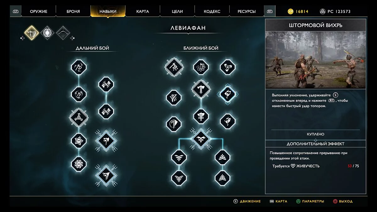 Если враги держатся от вас на расстоянии, «Штормовой вихрь» поможет вам сократить его между ними и Кратосом. Важно, что навык не даст вам нанести большого количества урона, но зато сможет стать первым ударов в цепочке комбо.