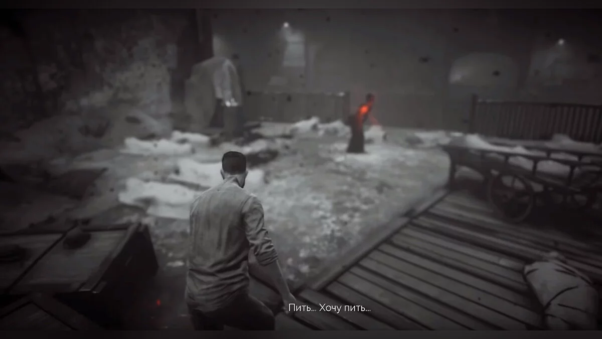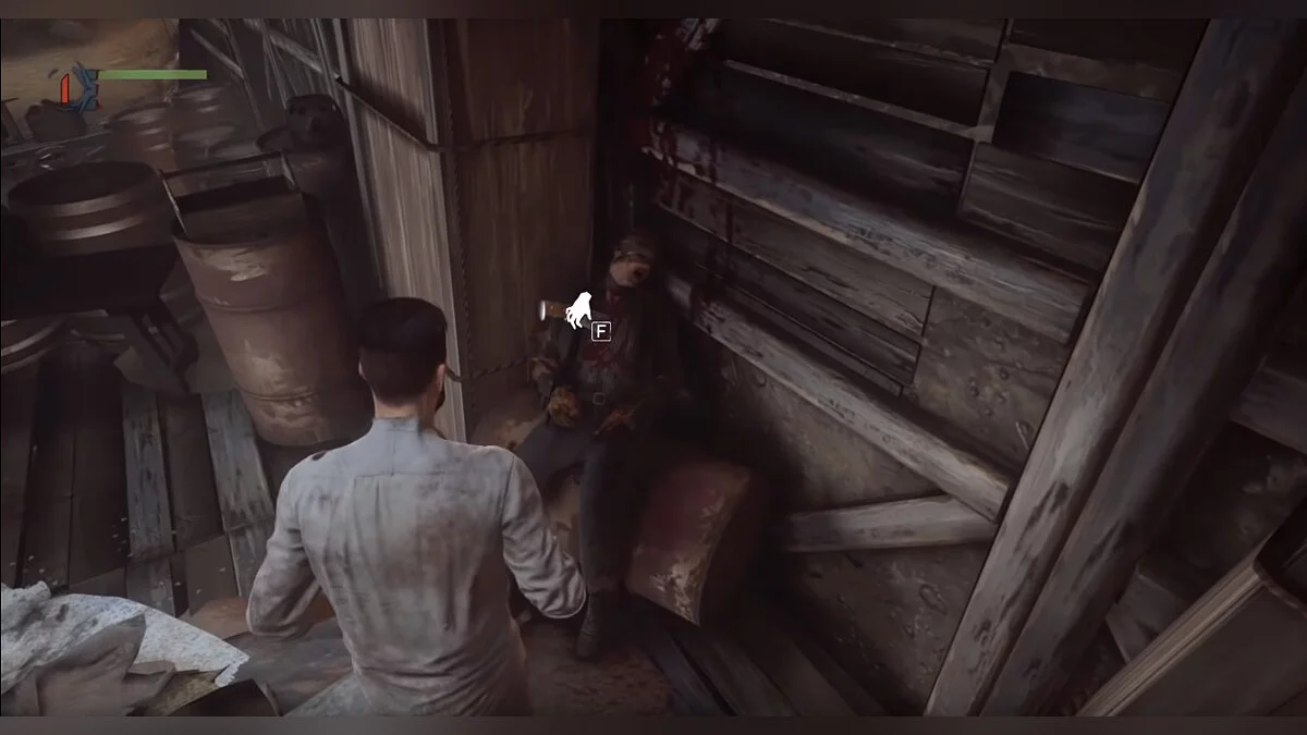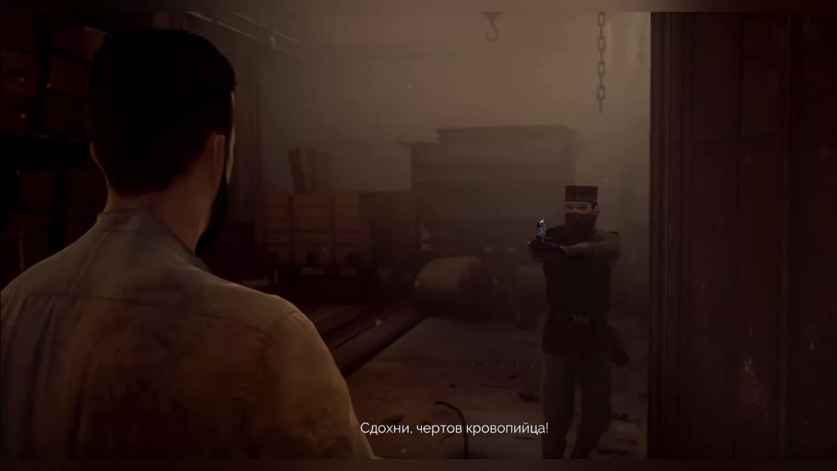 Систем боя немного напоминает серию Dark Souls, у героя есть выносливость, которая расходуется на атаки и увороты. Ломаем коробки и бежим дальше. Впереди будет наш первый враг, он вооружен огнестрельным оружием. Разбираемся с ним и забегаем в туннель.
