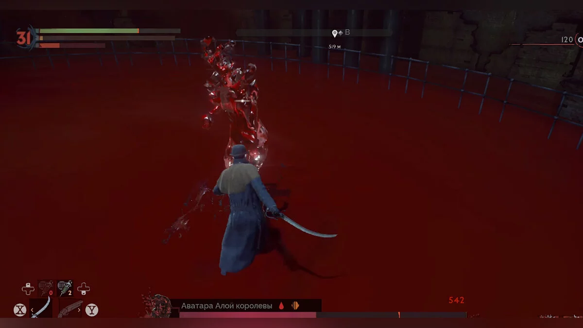 Затем будет бой с финальным боссом — Аватарой Алой королевы. Очень быстрый враг. Не стоим на месте, постоянно уклоняемся и атакуем одним ударом. Смотрим кат-сцену после победы.