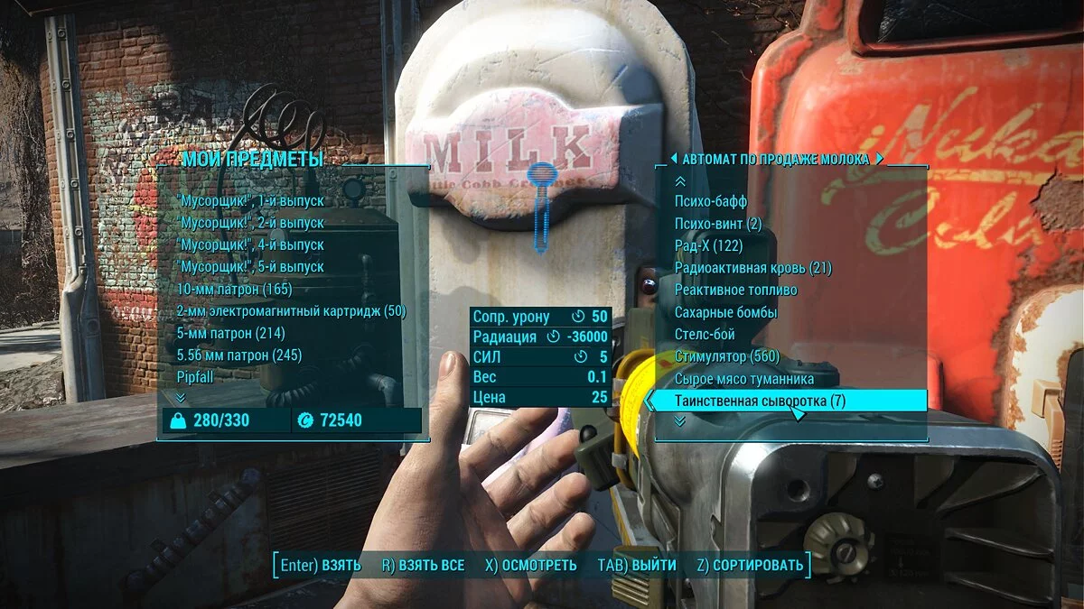 У этого квеста два варианта концовок. Если вы решите убить плохиша, то получите еще 1 единицу сыворотки, последнюю. Согласившись сотрудничать с плохишом, можно периодически получать по 1 сыворотке. Впрочем, вы всегда можете заспавнить этот объект через консоль. Код — 000ec4f7.