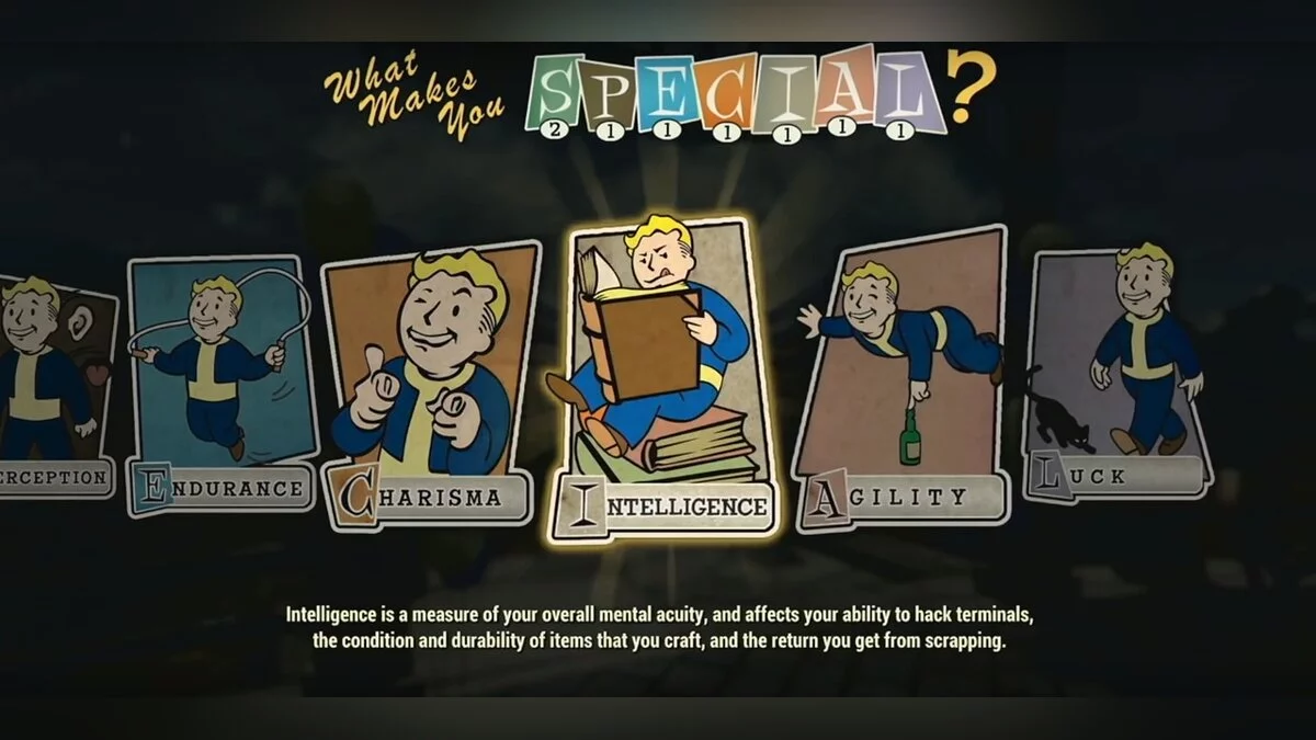 Интеллект влияет на возможность взламывать терминалы, состояние создаваемых предметов и на результат переработки предметов