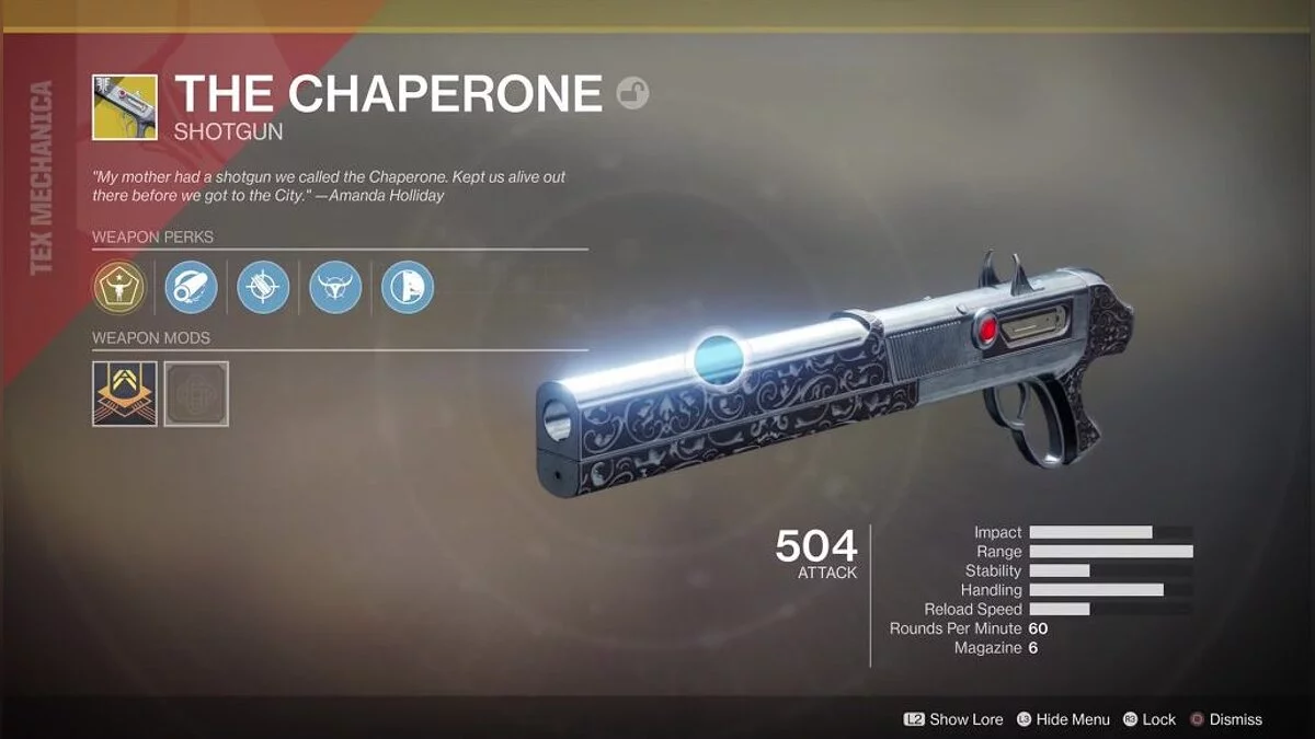 С выходом дополнения «Отвергнутые» в Destiny 2 добавлен ряд нового оружия, включая экзотический дробовик «Компаньон» (Chaperone).